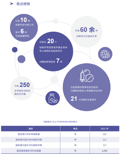 报告指出,在科技创新战略引领下,金年会医药2021年累计研发投入62.03亿元,比上年增长24.34%,研发投入占销售收入比重达到23.95%,再创历史新高。以此为支撑,2021年公司有3款创新药获批上市,已上市创新药总量增至10款,其中6款为抗肿瘤药物。同时还有60余种创新药正在临床开发,250多项临床试验在国内外开展,其中近20个创新药项目获准开展全球多中心或地区性临床研究。在创新药研发上,金年会医药已基本形成了上市一批、临床一批、开发一批的良性循环。